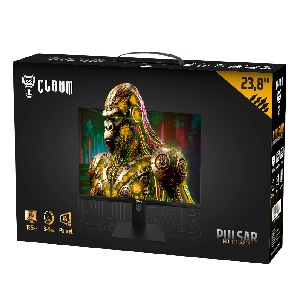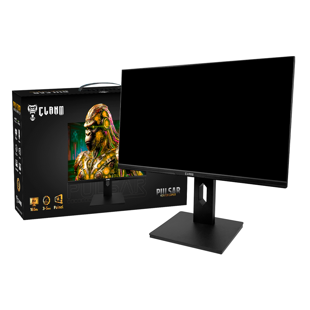 O Monitor Gamer Pulsar 23.8” da Clanm é ideal para jogadores de FPS e eSports. Com taxa de atualização de 165Hz e tempo de resposta de 3-5ms, garante mira precisa e movimentação fluida sem atrasos. O painel VA Full HD entrega contraste intenso e cores vibrantes, enquanto o suporte ajustável e compatibilidade com AMD FreeSync e NVIDIA G-Sync garantem máxima imersão.