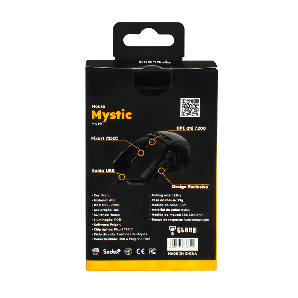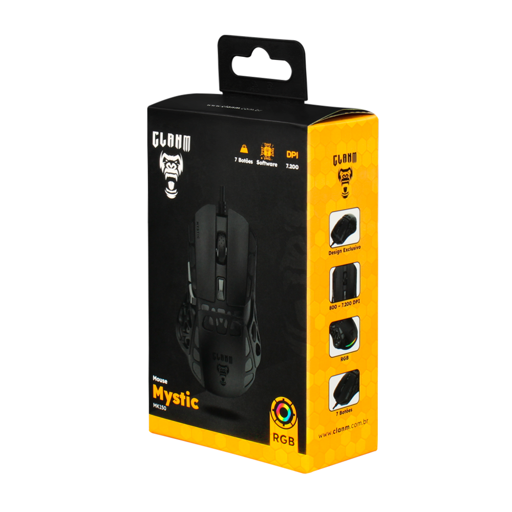 Seja preciso e veloz com o mouse gamer Mystic da Clanm. Seu sensor óptico Instant 725F ajustável até 7.200 DPI proporciona movimentos suaves e precisos. Conta com design ergonômico e iluminação RGB que pode ser controlada através de software próprio, unindo conforto e estilo para longas sessões de gameplay.